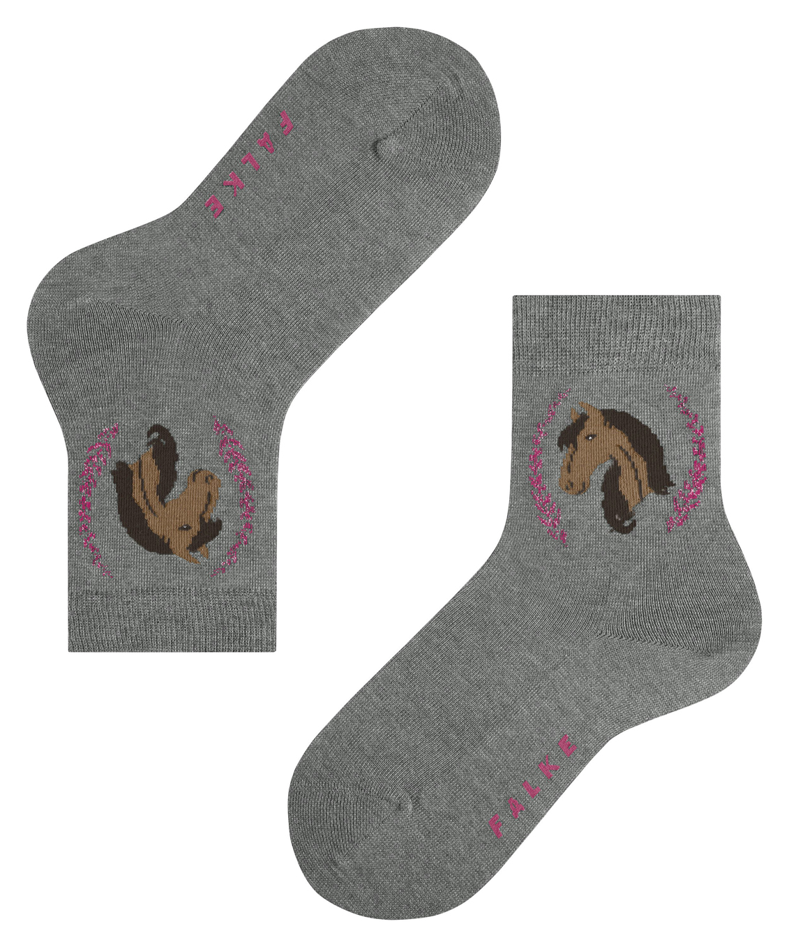 Детские носки для девочек украшены чудесным рисунком с головой лошади в окружении блестящих лавровых венков. Прекрасный выбор для маленьких любительниц верховой езды и лошадей. Устойчивый материал с приятным на ощупь и легким в уходе хлопком FALKE — WE CARE обеспечивает оптимальный комфорт, а идеальный крой FALKE отвечает за удобную посадку. Классический вариант этой модели представлен в каталоге под номером артикула 12185.